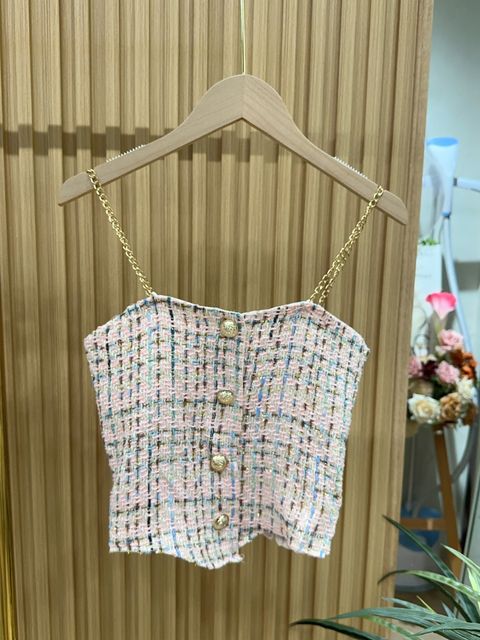 A529 - Beth tweed Chain Strap Top